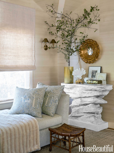 In the House Beautiful September issue a feature article on designer Benjamin Dhong highlights Carol's mirror. Benjamin Dhong has chosen the SunWave to go over a faux-rock console as a focal point in the master bedroom.