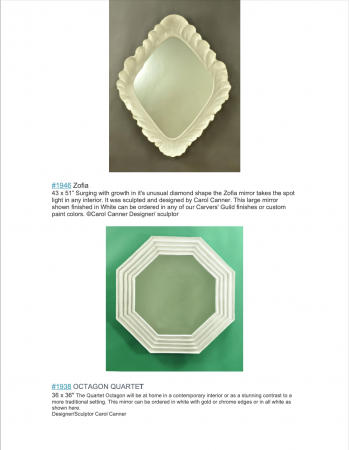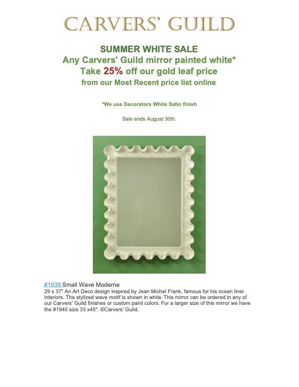 We love these classic favs in all white! Carvers' Guild produces all of our extraordinary mirrors in West Groton, MA so you can make it white, black or anything in between. Fine finishes, especially our gold and silver leaf, are our specialty!